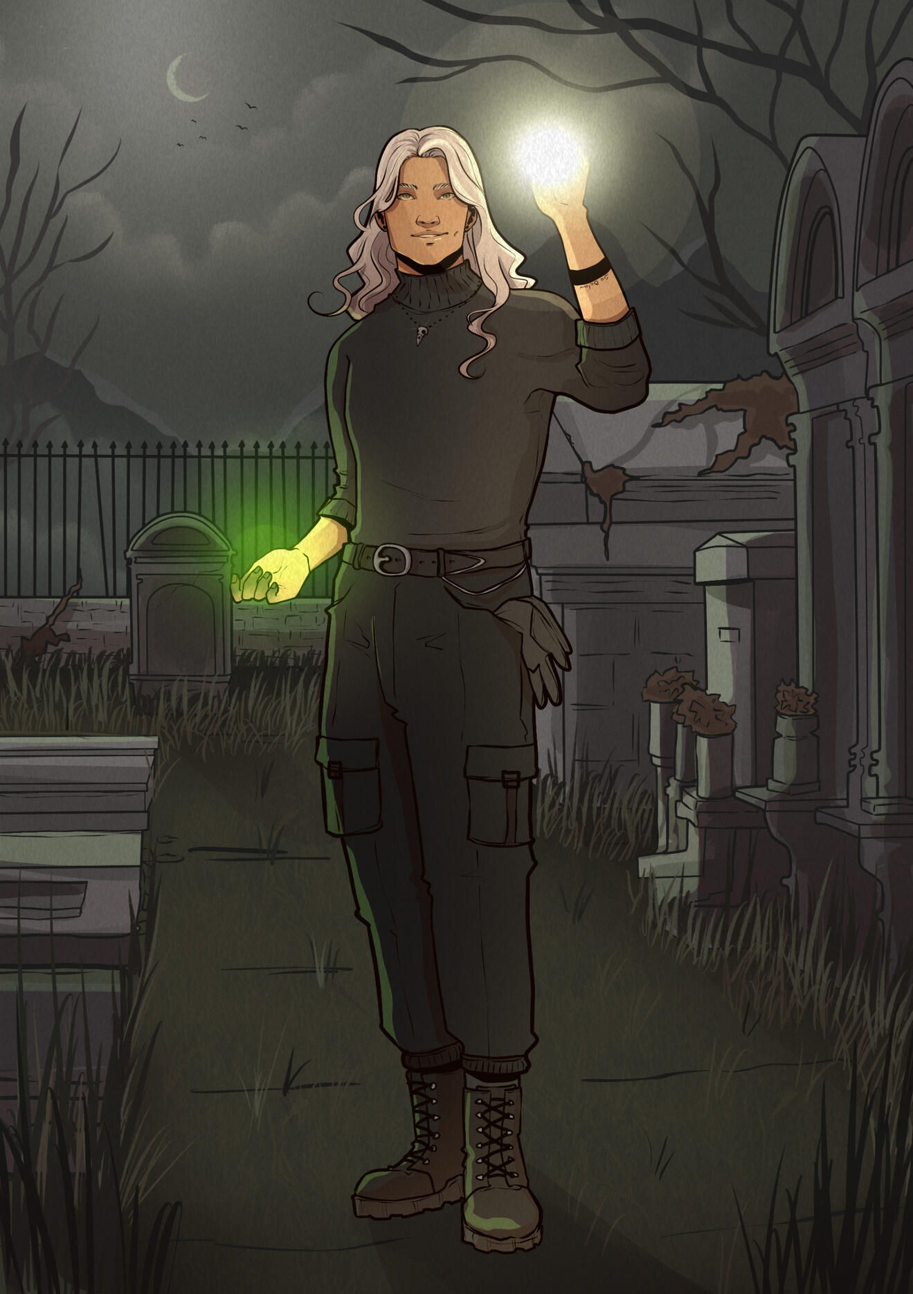 A year after they moved, Vasille’s world shifted once more. Their cat, BonBon, had been killed by wild dogs, having escaped when Vasille failed to close the door. When Vas found out, he became distraught, and requested to see the cat. His father did let him see it, and began explaining how all things eventually die, for that was the natural cycle of life. The stress of the event caused his ability to appear once more. One moment, the cat was dead. The next, it was rising to its feet, chattering up a storm. Vladimir didn’t realize that happened at first until he saw Vas’ hands, and how the color seemed distorted on the tips of his fingers.However, the next morning, the cat was dead once more, and despite Vas’ attempts at raising it again, it never worked- the cat only decaying at three times the normal rate.Death usually is difficult to understand.Vasille was, admittedly, a loner in his youth, more due to the fact that he was coping with deep rooted trauma and became reclusive more than any sort of language barrier. As he grew older, he made friends with a girl named Sabryna, with hair like rubies and eyes like amethyst. A year older than himself, Sabryna was full of mischief and trouble; her mother was a Seer- someone who had the ability to see into the future without the usage of a Devil Fruit. This caused the family to be rather well known, although nowhere near well received due to her mother often dealing with Pirates seeking out her talent- among other things.Things were good. That is, until his house was broken into. He hid in the basement alone until his father was on the way home, bringing backup with him. The men were tearing their home apart above them. but when they started coming down the basement stairs, he panicked.And when he panicked, the fruits of Vasille’s hidden labor bloomed.Everything he knows of what happened in that moment, he learned from his father afterwards. According to him, their basement floor had begun cracking beneath Vasille’s feet as decayed hands reached up, grasping onto the men's ankles, pulling them down into the floor. Vasille didn't kill them, but one man did end up losing a leg, as the hand that had grabbed him twisted while bringing him down, snapping his leg like a twig. Vas passed out afterwards, his nose bleeding and pulse weak and thready. He woke up in the hospital the next day, where he learned of everything.He attended a public secondary school in the city, where he would spend his days with his friends and his nights sneaking out to break into the library, raiding the shelves for anything he could get his hands on pertaining to the art of magic- specifically, Necromancy. However, the public library held no such knowledge, much to his annoyance.MEETING THE MENTOR